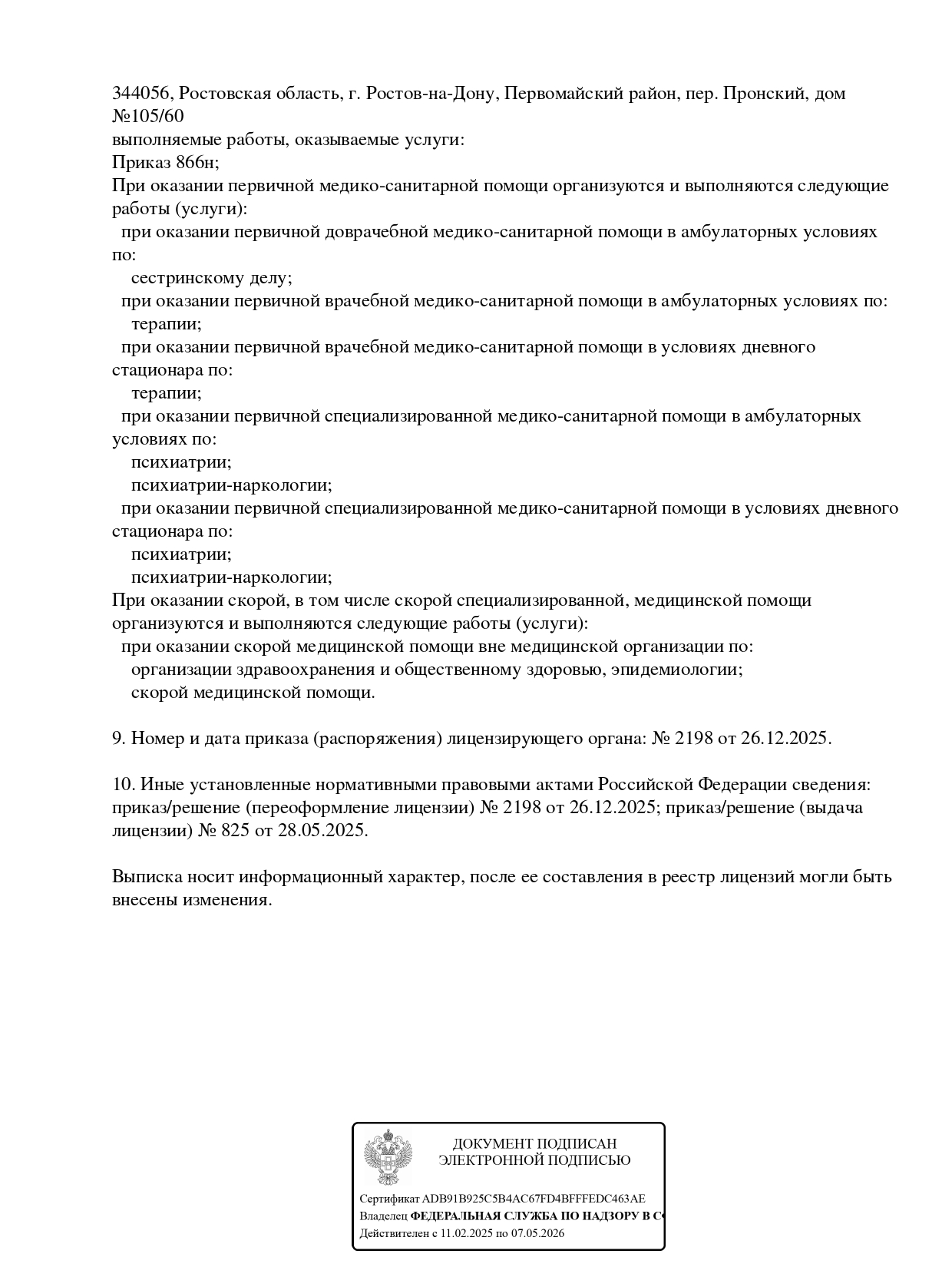 Деятельность клиники основана на медицинской лицензии Л041-01050-61/02371268